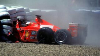 Heute vor 22 Jahren crashte Michael Schumacher beim British GP in Silverstone, zog sich schwere Beinverletzungen zu, aber hatte noch Glück im Unglück