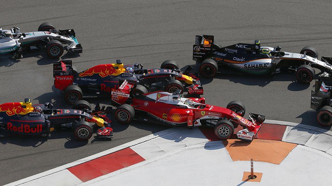 „Wir wollen nicht Dritter, sondern Erster werden. Mein Start war OK, aber nach dem Restart fehlt uns der Speed und ich fiel hinter Lewis zurück. An Valtteri kam ich vorbei, aber Mercedes war zu schnell“, kam bei Kimi Räikkönen trotz des 700. Podiums für Ferrari nicht so richtig Freude auf. Noch viel weniger Grund zur Freude hatte Teamkollege Sebastian Vettel, denn der Deutsche wurde bereits in Runde 1 von Intimfeind Danil Kvyat gleich doppelt abgeschossen. Der Russe verbremste sich in Kurve 2 ins Heck des Ferrari-Stars und räumte ihn eine Ecke später gleich komplett in die Wand. „Ich denke die Bilder sprechen für sich“, ließ Seb nach dem Rennen wissen. Kvyat, der im letzten Rennen schon mit Vettel aneinandergeriet, wurde diesmal zurecht bestraft, was den Roten aber nichts hilft.