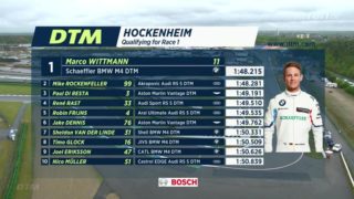 Am Ende hatte der zweimalige DTM Champion, Marco Wittmann, den besten Durchblick und stellte seinen neuen Turbo-BMW auf die Pole Position. Platz zwei geht ebenfalls an einen Ex-Champion, nämlich Mike Rockenfeller in Audi Sport Diensten. Für Platz drei qualifizierte sich sensationell Paul di Resta! Der ehemalige Mercedes AMG Pilot, der jetzt für R-Motorsport / Aston Martin unterwegs ist, beschert den Briten eine exzellente Ausgangslage für ihr erstes DTM Rennen. Ferdinand Habsburg, ebenfalls im Dienst von Aston Martin, startet als 17. in das erste Saisonrennen.