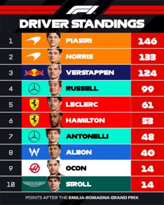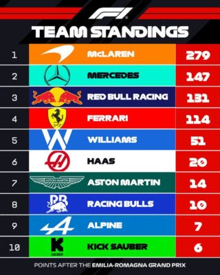 So steht’s also in der Formel 1 WM 2025 nach dem Rennen in Imola: