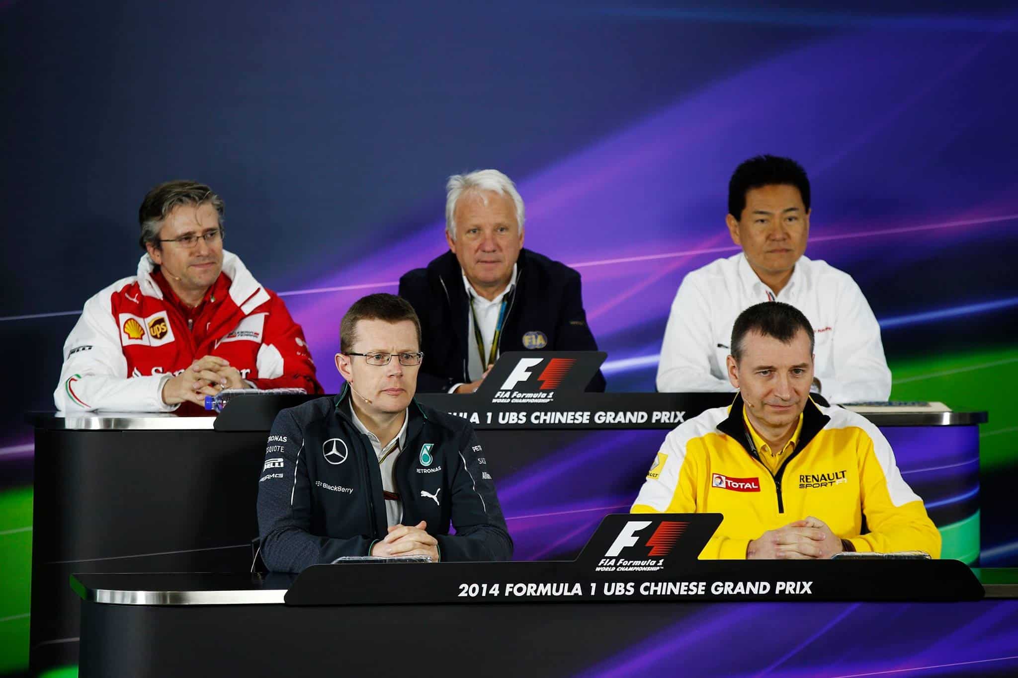 Anwesend waren bei der Pressekonferenz diesmal keine Fahrer, sondern Pat Fry (Ferrari Chefingenieur), Charlie Whiting (FIA), Yasuhisa Arai (Honda), Andy Cowell (Mercedes AMG), Rob White (Renault Sport F1)…