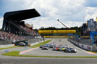 Nachdem die Ampeln ausgingen, ging das Chaos los. Hinter den beiden Führenden Rene Rast und Audi Teamkollege Mike Rockenfeller gab es zahlreiche Berührungen, in den Infights flogen zahlreiche Karbonteile. Der Meisterschaftsführende Mattias Ekström kollidierte mit BMW-Pilot Timo Glock, während Augusto Farfus den vor ihm fahrenden Rockenfeller attackierte, aber vom Deutschen schwer abgedrängt wurde. Nach einem hefigen Rempler des Audi-Fahrers musste Farfus mit einem Plattfuß an die Box und sein Rennen war gelaufen.